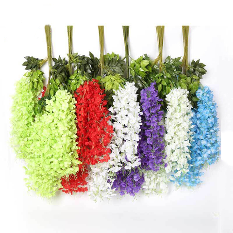 Wisteria Flores artificiales Wisteria Flores colgantes Wisteria Vine para boda Flores de seda Decoración