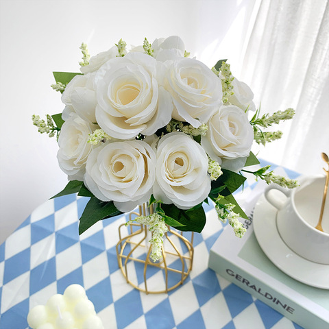 Ramo de rosas de seda realista para eventos Decoración floral Día de San Valentín y ajustes románticos